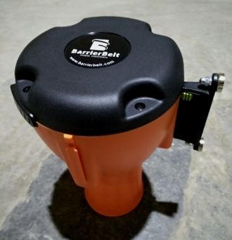 Пластиковая головка Barrier Belt-Barrier NOVO™ TOP+S с сигнальной лентой 10 метров и с МАГНИТНЫМИ ДЕРЖАТЕЛЯМИ ВЫТЯЖНОЙ ЛЕНТЫ. Лента на конус 750 мм. Настенный блок.