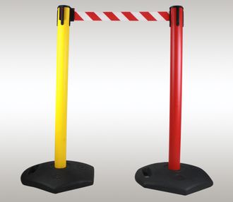 Пластиковые столбики INDUSTRIAL BarrierBelt -BarrierNovo с вытяжной сигнальной лентой 2,3м -2,5 м.-3,0 м.-3,2 м.-3,65 м.-4,0 м. и 4,5 метра c основанием из резины.Ограждения для больших территорий.