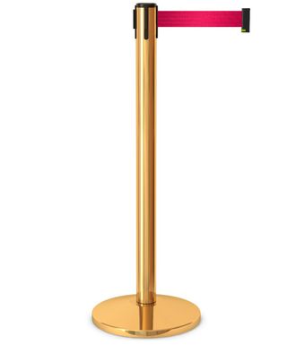 Имидж столбик Barrier Belt 02 «Золото» с встроенной лентой: 2,3м; -2,5м; 3,0м; -3,65 метра. Золотой ленточный столбик, для бизнес класса для официальных приемов и встреч гостей.